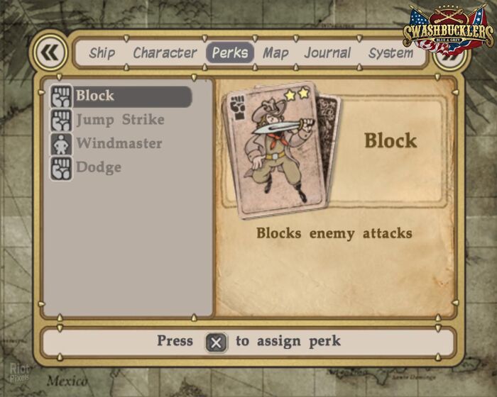 Поскольку Swashbucklers - это RPG, у вас есть система развития характеристик Авраама. Каждый враг, которого убиваете в пеших битвах, приносит вам опыт. Это практически единственный способ повышения уровня. Есть три основные атрибута для повышения уровня: фехтование, стрельба и защита. Каждый раз, когда вы повышаете уровень, то предоставляются один или несколько очков навыков для использования в этих трёх областях. Помимо навыков, у вас есть доступ к характерным особенностям персонажа. Они варьируются от активных характеристик, таких как полезная характеристика уклонения, до пассивных характеристик, таких как увеличение здоровья, энергии и урона. Но эти характеристики не ограничиваются сухопутными боями, а доступны и для морских боев и навигации. Одна из моих любимых глобальных морских характеристик - та, которая восстанавливает мой экипаж после битвы. Меня также порадовало увеличение характеристик моего корабля в морских сражениях.