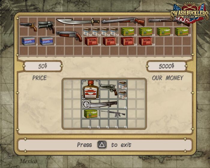 Возможно, моя самая любимая часть Swashbucklers - это функция Верфи. Мне было довольно приятно покупать новые корабли, продавать свой старый за деньги и снаряжать их гаубицами. Диск с Swashbucklers: Blue vs. Grey сейчас можно найти на интернет-барахолках, он ещё не редкость, есть смысл купить и пройти игру.
