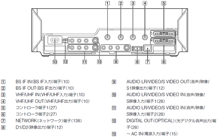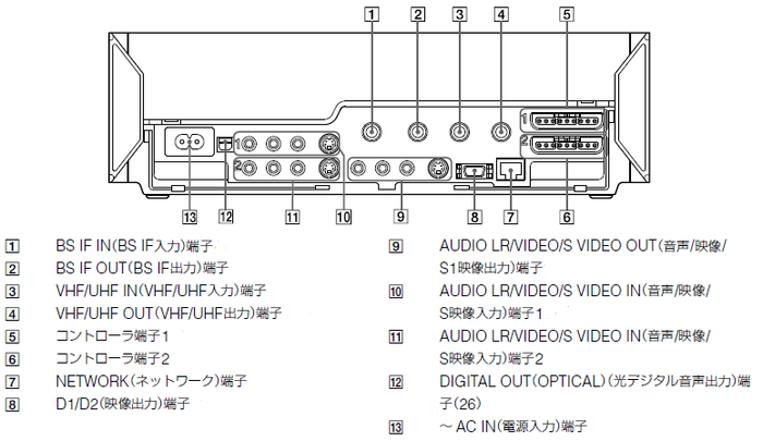 1. Появился разъем 4pin DV in. - обозначен под номером 12. Известен так же как i.LINK от Sony, FireWire от Apple, а так же как IEEE 1394. Доступен только в старшей модели DESR-7500. Использовался для подключения цифровых видеокамер - ограниченный модельный ряд, список совместимости публиковался на сайте Sony.