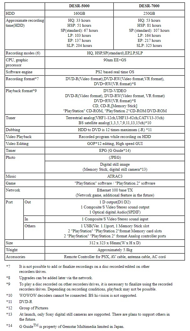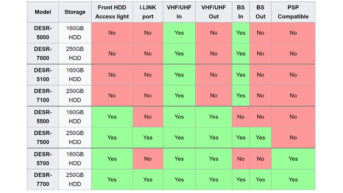 Модели с индексом DESR-5xxx содержали встроенный HDD на 160Gb, DESR-7xxx - 200Gb.