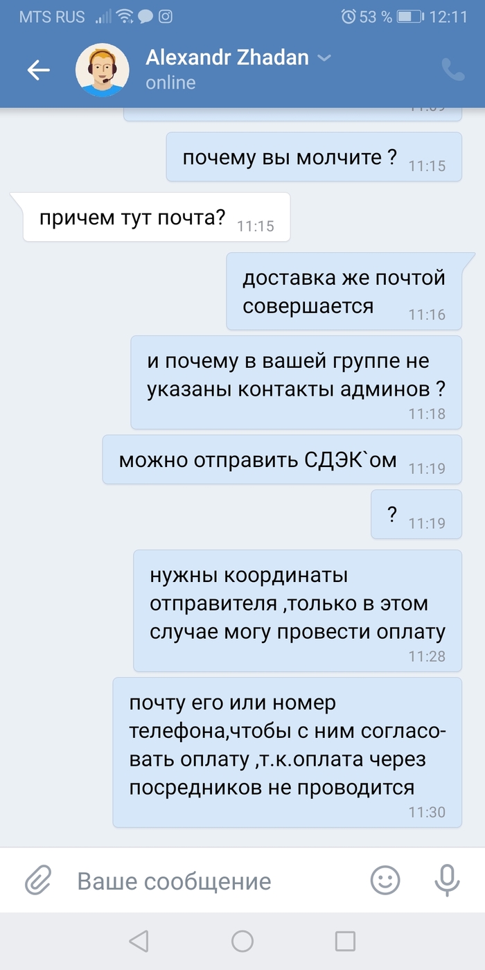 Представился он якобы менеджером группы Owerwatch и посредником между отправителем PS4 Pro и мной (переговорщик).PS. В данном сообществе нету контактов админов.
