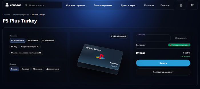 Как купить подписку PS Plus Турция и карту PS Store через Code-top.shop — пошагово