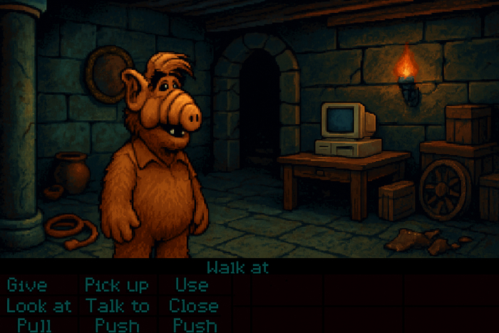 сама игра (если так можно сказать) достает из могилы давно забытый жанр "Point and click", игра простенькая в плане графики, пиксельная, приятная глазу.