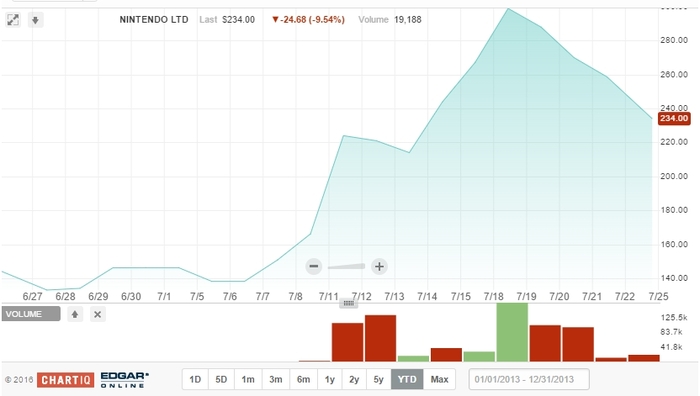 Но мой вопрос к проф. сообществу остается прежним: кто руководит всей рекламной кампанией? Хорошо было бы это узнать, поскольку я уверен, что для этого кейса никто красивое видео рисовать не будет и в Канны с ним не поедет. Поскольку речь идет о больших деньгах, потраченных на PR-кампанию, и о влиянии этой шумихи на стоимость акций Google (теперь Alphabet) и Nintendo. Вот графики июля: