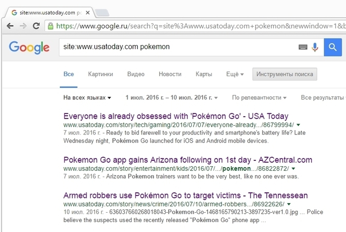 Найти первые вбросы при посеве может каждый. Просто берёте всемирно известное СМИ и делаете запрос «Pokemon» по дате начала предполагаемого посева, как на скриншоте. И видите все первые, качественно брендированные выходы, а дальше по датам уже идет волна «полученных выходов» (earned media), но с задержкой в некоторое количество дней.