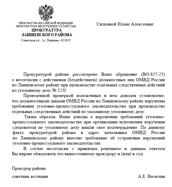 Обращение к Полномочному представителю Президента России и в местную прокуратуру