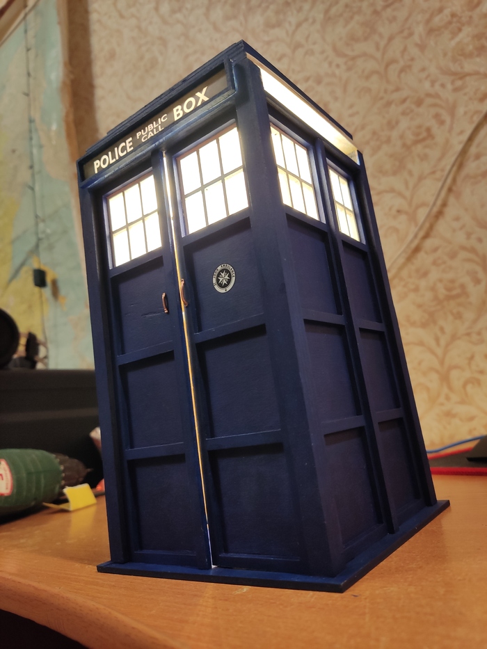 Этот ночной светильник стал подарочком на день рождения, а к созданию подобной вещицы подтолкнул тот факт, что мы смотрели "Доктора" уже второй месяц (пока на 5-м сезоне) и я посчитал такой подарок вполне себе актуальным, ну да ладно)