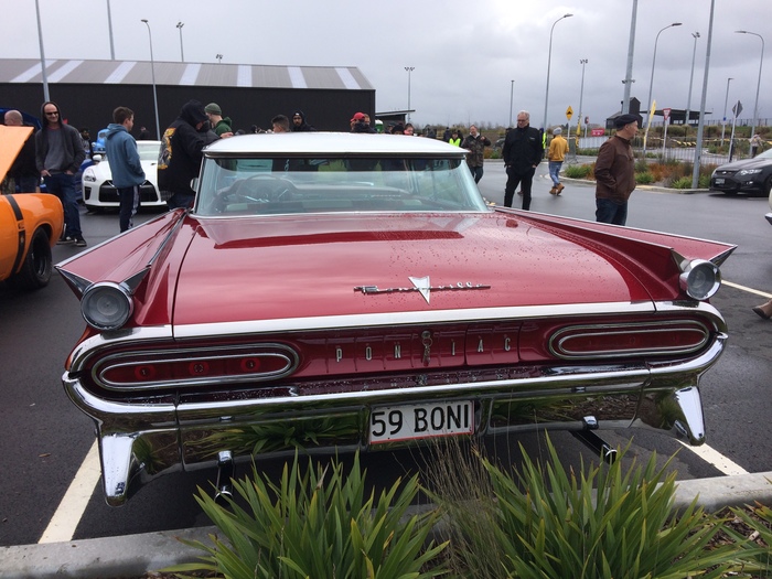 Этот красавец, Понтиак Бонневиль, был представлен в 1959 году. Первый год технологии Wide Track (расширенная база), первый год для новой 2-дверной версии с жесткой крышей, первый год для легендарного двигателя Pontiac 389 V8. Bonneville был оснащен V8 300 л.с. с карбюратором и 4-ступенчатой автоматической коробкой передач Super Hydramatic. Были также двигатели от 215, 260, 315, 330 или 345 л.с. Некоторые из опций - радио WonderBar AM, гидроусилитель руля и колесные колпаки Pontiac Tri Blade с широкими белыми радиальными шинами. Bonneville 1959 года был самым дорогим автомобилем в линейке Pontiac. Также был автомобилем года в 1959 году.