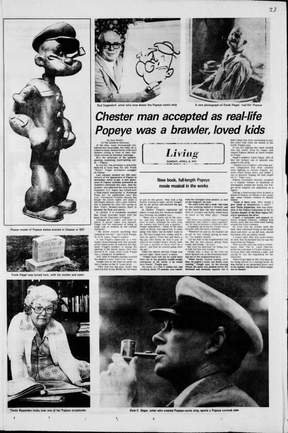 Редактор написал, что в Честере Рокки был известным персонажем и что он считался человеком, вдохновившим Элзи Сегара на создание Попая. В статье говорится: «В молодые годы он демонстрировал чудеса физической подготовки. Из-за крепкого телосложения его по-доброму прозвали Рокки». Его угловатая челюсть и знаменитая трубка из кукурузных початков, по-видимому, произвели впечатление на молодого Сегара.