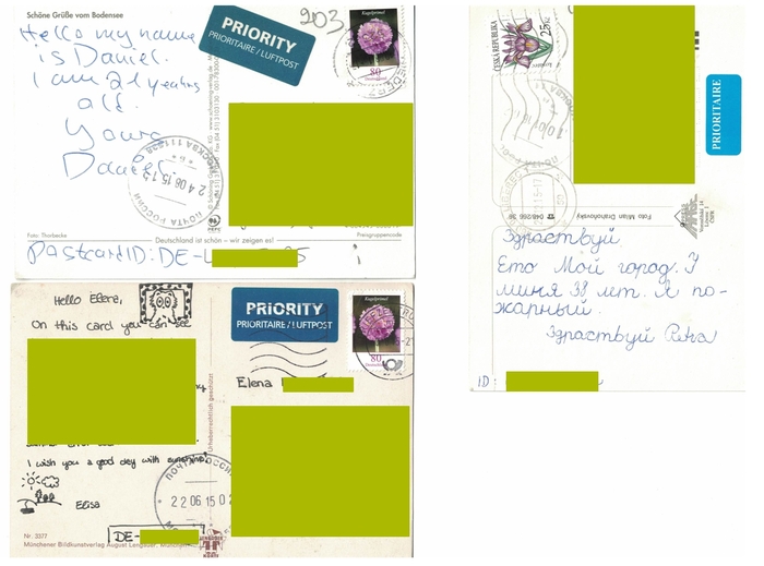 Получать адреса и регистрировать полученные открытки нужно будет в Интернете на сайте https://www.postcrossing.com/ (для всего мира) или https://postcross.ru/ (для русскоязычных), достаточно самого простого смартфона, если нет ПК или ноутбука.