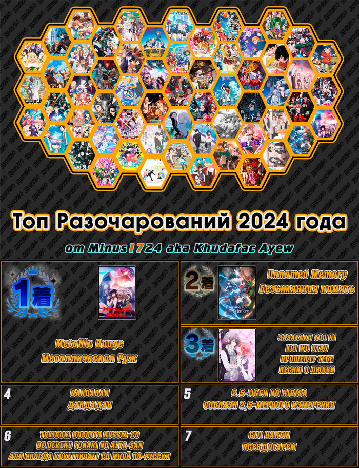 Здесь уже пойдут личные топы. Три топа: Аниме-фильмы; Достойные упоминания; Аниме не 2024 года, просмотренные в 2024 году. И один анти-топ - Разочарования года.