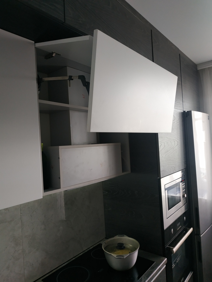 Было решено оставить авентос от blum, потому как это один из немногих подъемников, которые реально работают годами без регулировок и косяков. Польские и китайские аналоги как правило начинают ронять фасад уже через пол года -год.