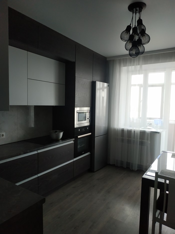 Кардинальных изменений потерпел только цвет. Было решено делать квартиру в одной тональности, а муж настаивал на черной и серой гамме, забегая вперед хочу сказать что решение было отличным, потому как кухня выглядит более современно и отличается от рядовых корчневых/бежевых гарниров. В холодных тонах все выглядит более чистым и свежим, что неплохо играет на кухне)