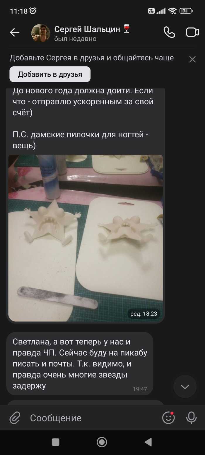 5 декабря того года "добрый человек" Пообещал бесплатно для пикабу отлить 50 штук звёзд вот таких