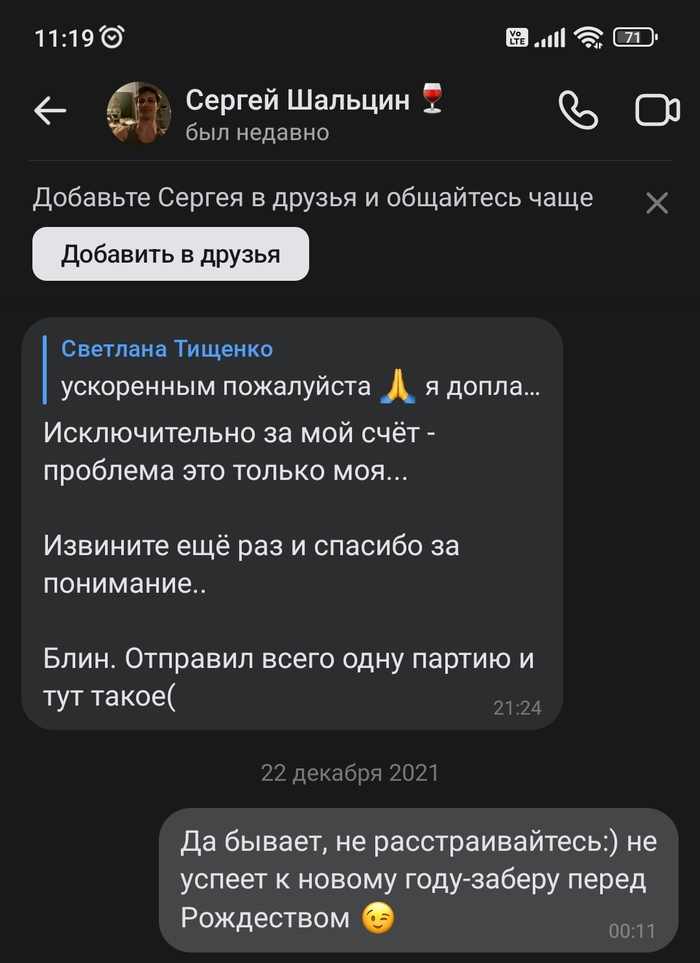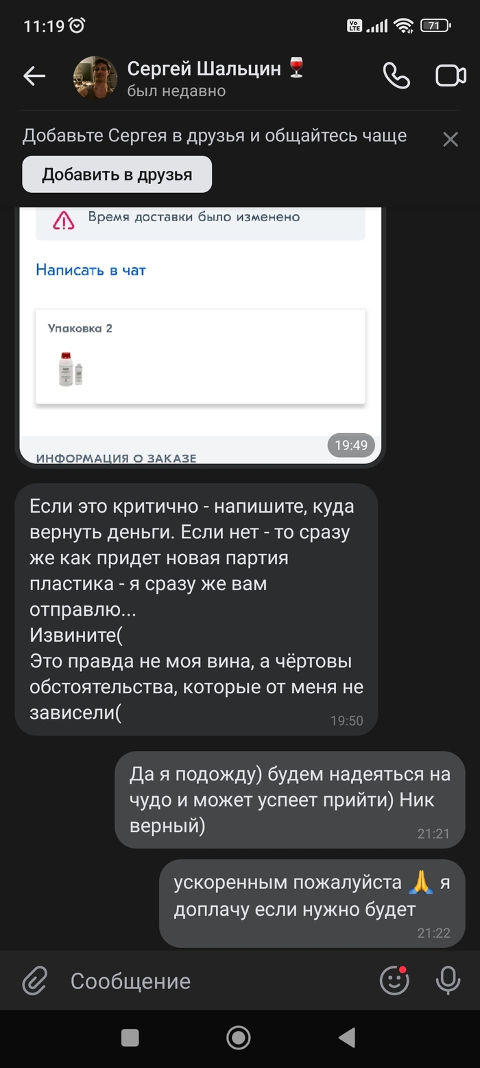 Я решила забрать свою бесплатную и попросить одну плюсом для начальницы (соответственно с оплатой за вторую и доставку). Договорились, сумму перевела выходил на связь, объяснял задержки. Ну бывают проблемы, нечего страшного.