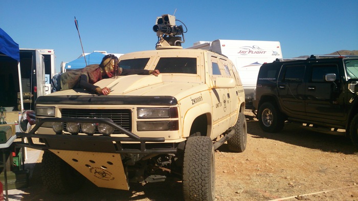 Сфоткал на фестивале Big Sandy shooting day несколько лет назад. Машина бронированная, пулемёт настоящий. Серьёзный подход к подготовке к зомби-апокалипсису.