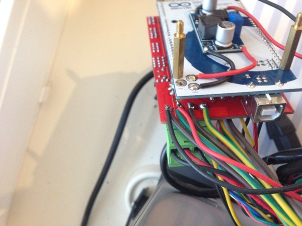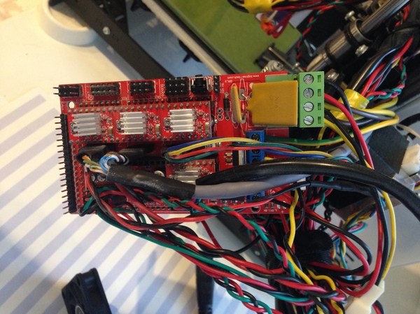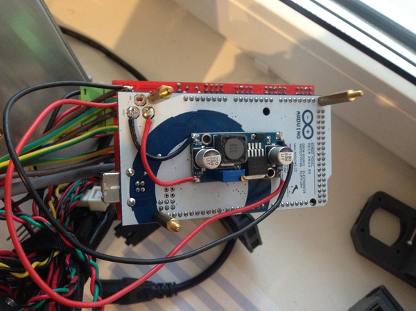Питание от блока питания к RAMPS, я припаял отдельно к ножкам, чтоб оставить свободной клемму для подключения других устройств.