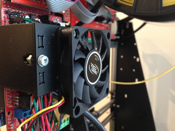 Он чуть больше, чем нужен. Больший кулер существенно уменьшит шум от принтера.