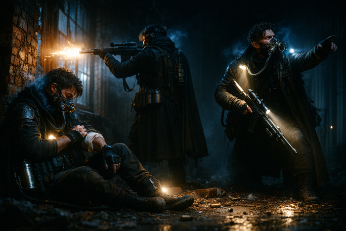 3) События происходят в мире, где больше нет солнечного света. А значит надо вставить механику ночи. С ней я намечался довольно сильно и она в целом заслуживает отдельного поста. Это не просто -1 на попасть. Используй фонари чтобы подсветить цель, но будь аккуратен. Включив фонарь- тебя тоже теперь видно.