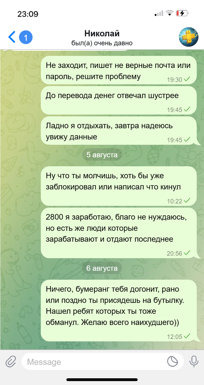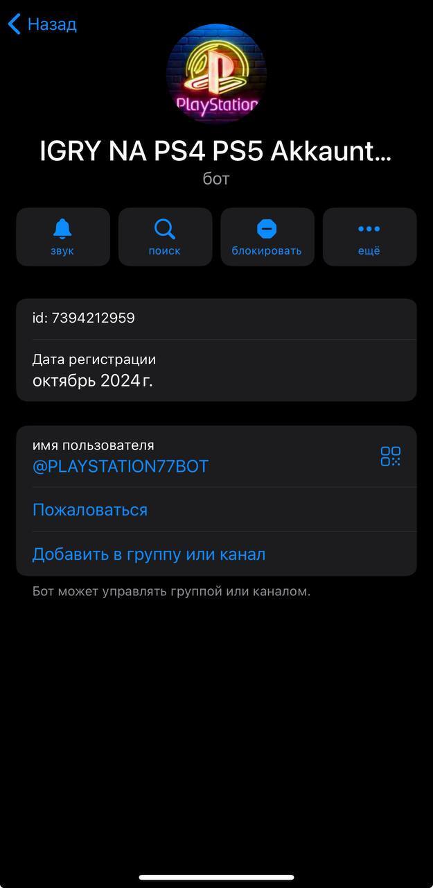 Всем привет! В недавнем времени приобрел консоль PS5, а аккаунты не оказалось в наличии и зарегистрировать его из за санкций оказалось не возможным в РФ. По итогу было принято решение найти селлера. Нашел через всеми известный телеграм, бот и канал на первом месте. Написал, определился что нужно и перевел денежные средства. Далее человек естественно пропал и не отвечал на мои сообщения. Сумма не большая, по карману мне не ударила. Пишу тут просто, что бы вы не обожглись и воспользовались моим не удачным опытом, скриншоты его канала и бота прикрепляю, отзывы кстати фейковые, никто не ответил на них, в дальнейшем он просто меня заблокировал. Ссылки на его каналы так же прикрепляю, а так же id его страниц, он его не сменит в отличии от ссылки, id можно посмотреть через приложение Swiftgram от Телеграм: Бот кидалы в тг:https://t.me/PLAYSTATION77BOT - id: 7394212959 Личная страница кидалы ТГ:https://t.me/psn_st - id: 6877209815 Ссылка на канал кидалы в ТГ:https://t.me/+QZm6QslyKgw4NGVi - id: 1001871604805 Ссылки пока активные, но скоро как он увидит эту ссылку, то поменяет их. НАДЕЮСЬ ЧТО НИКТО ЕМУ ССЫЛКУ НА ЭТОТ ПОСТ НЕ ПЕРЕШЛЕТ, что бы он не изменил данные своих соц. сетей и никто больше не напоролся на него. Скриншоты переписки: