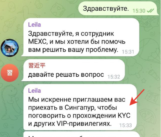 Так как у него есть персональный менеджер, он решил создать чат в телеграмме для решения вопроса, где будем я и он, и представитель Mexc.