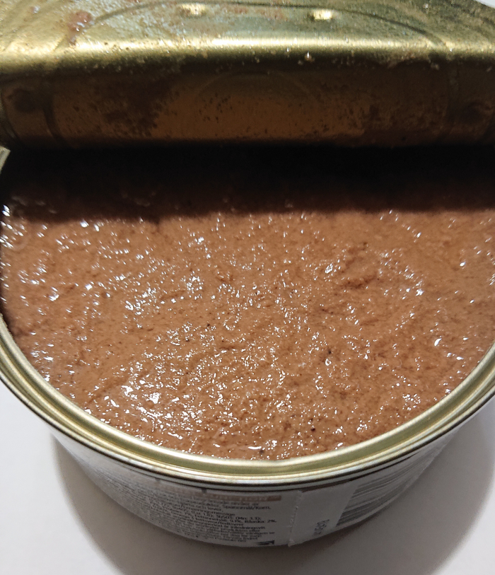 Далее фотографии самой подозрительной банки корма, на дне которой во второй строчке странно пропечатаны цифры "0".