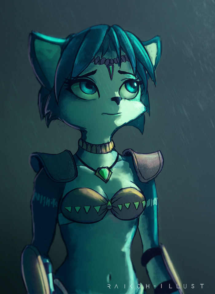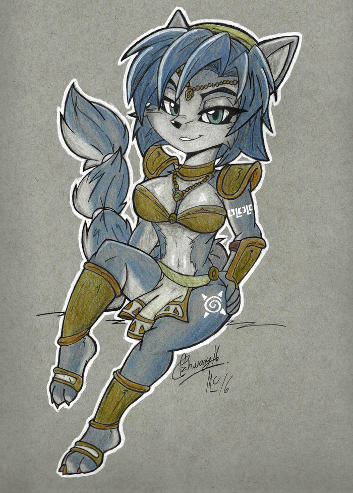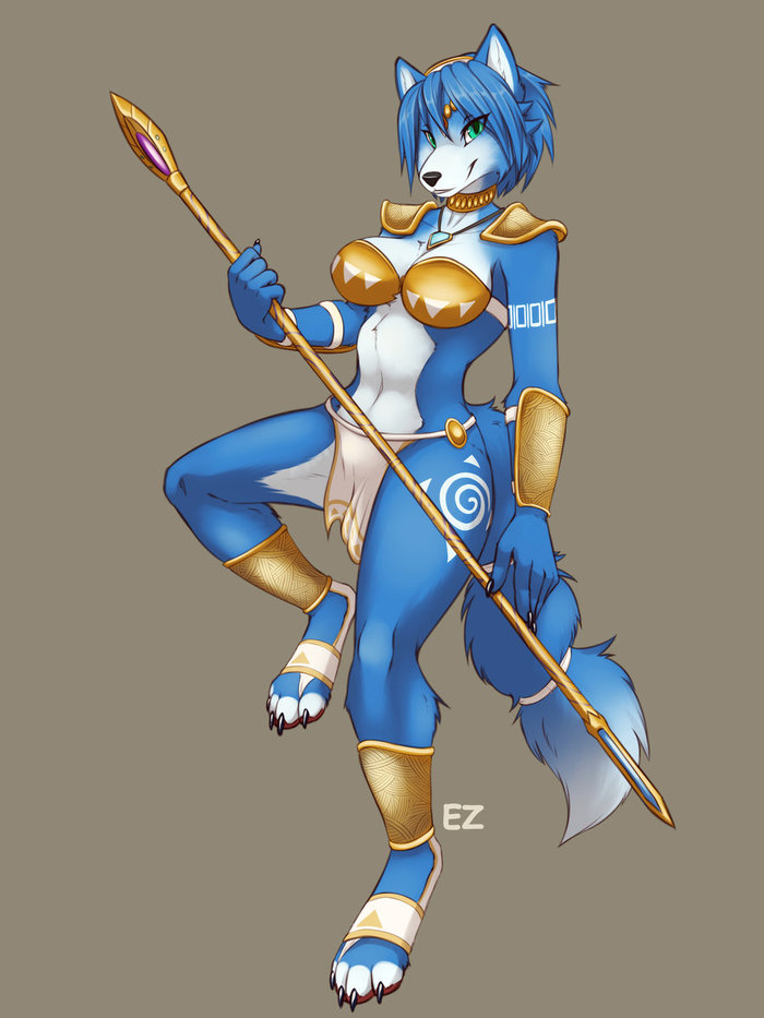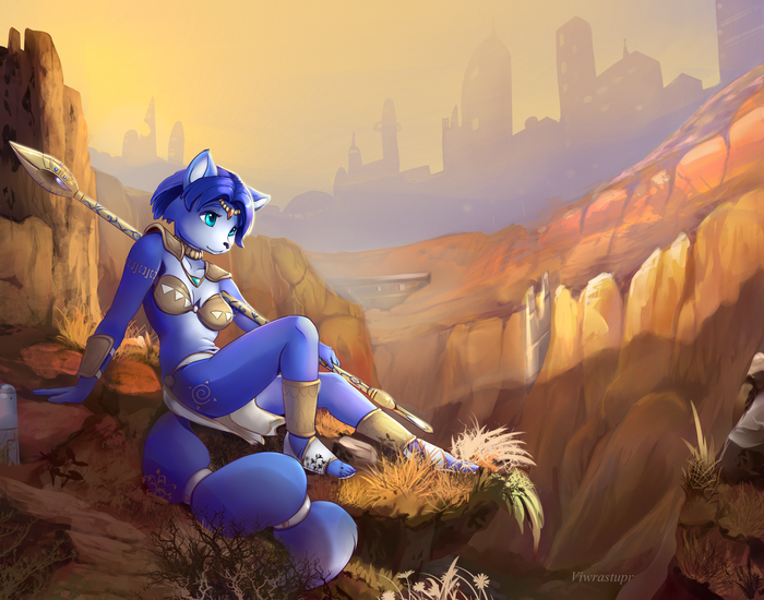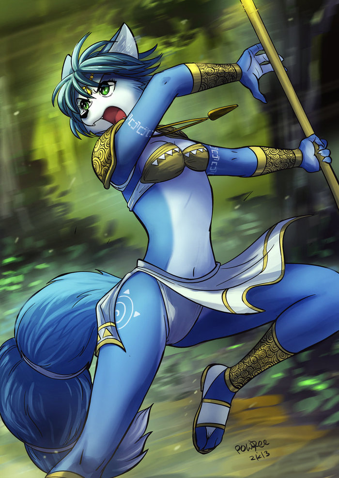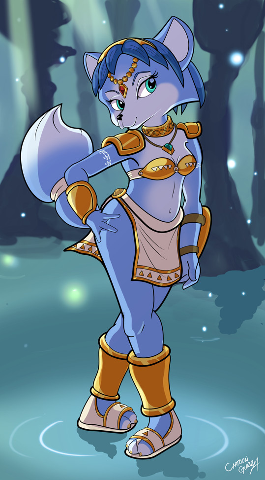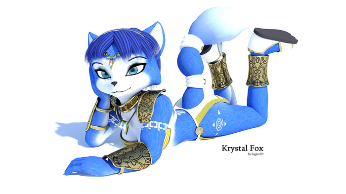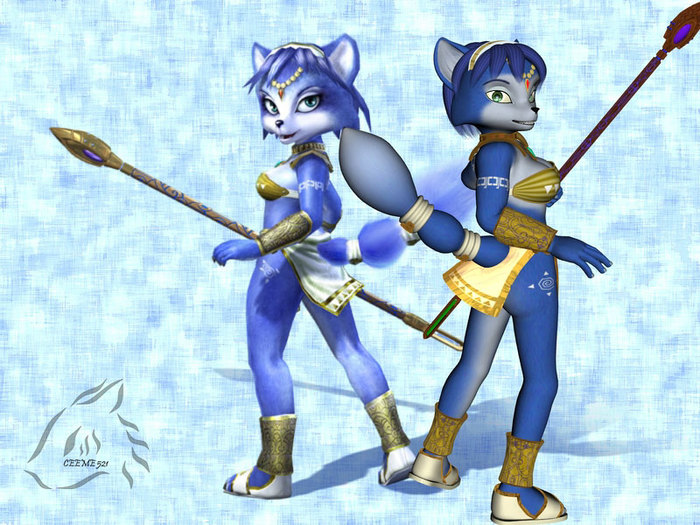 И так это Кристал синяя лисица, персонаж серии игр Star Fox Adventures.Последний представитель своей расы жившей на планете Cerinia (Цериния). После гибели планеты от не известного катаклизма Кристал решила поискать причины этой катастрофы и отправилась на планету динозавров Sauria (Саурия).На Саурии ее замораживаю в статис а дальше что то по сюжету игры.