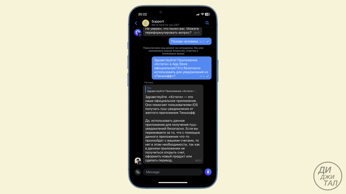 Да, мы написали в поддержку банка и спросили про приложение «Кстати». Представитель банка ответил, что это официальное приложение банка для владельцев iOS, поэтому нет смысла переживать. «Кстати» может только присылать пуши и показывать невероятно интересные истории в ленте. Доступа к счетам в нём нет.