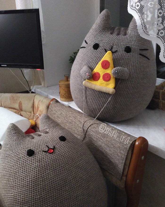 Связала за последние пару месяцев двух огромных котов-пушинов по 58 см каждый.