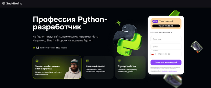 Профессия Python-разработчик от GeekBrains — отличное портфолио по окончании.