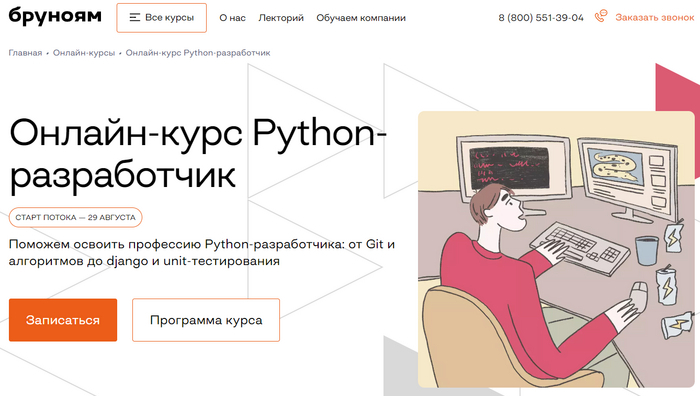 Python-разработчикот Бруноям – поддержка личного наставника на всех этапах обучения.