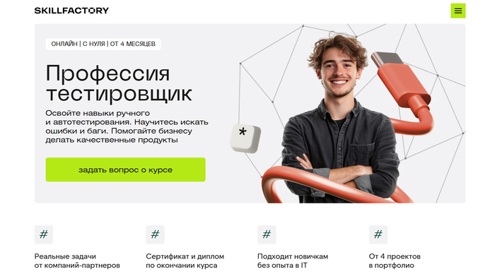 Тестировщик на Pythonот Skillfactory — практические задачи и стажировки от партнеров образовательной платформы.