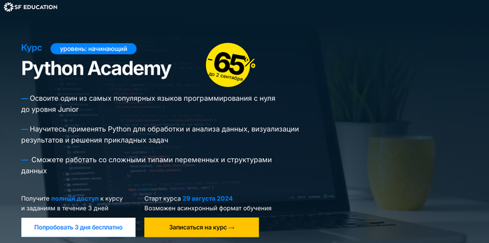 Python Academyот SF Education – короткий курс для быстрого обучения Python.