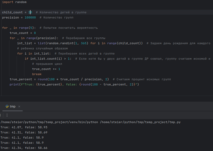 Листая пикабу в очередной раз глаз зацепился за утверждение от учителя математики о том, что в группе из 40 детей почти наверняка у двух будет день рождения в один день. Интуиция сигнализировала, что в интернете кто-то не прав и я ринулся в бой.