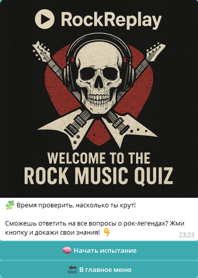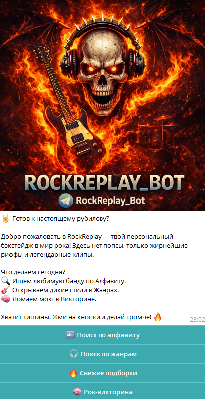 Бот называется RockReplay_Bot (можно найти в поиске ТГ канала @RockReplay). Денег я с него не прошу, рекламы ставок там нет. Делал для души и для таких же фанатов тяжеляка, как я.