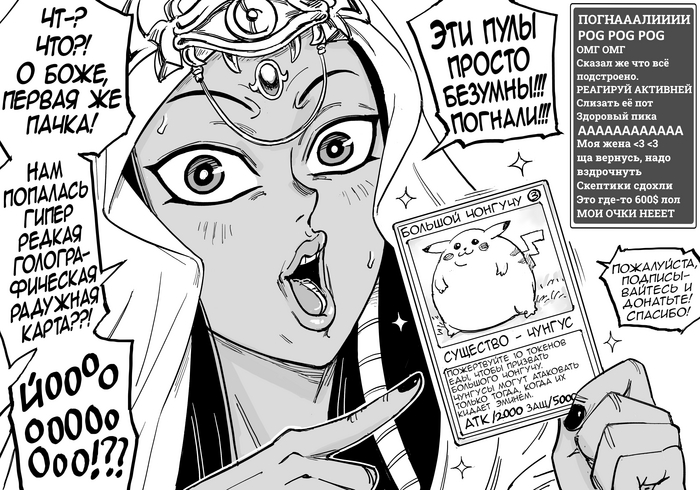 Исидзу использует Ожерелье Тысячелетия, чтобы обманывать на стримах по распаковке ККИ бустеров.(Художественный стиль Yugioh очень трудоёмок для рисования, потому что волосы у всех причудливо торчат, и на каждом висит по три египетских артефакта).