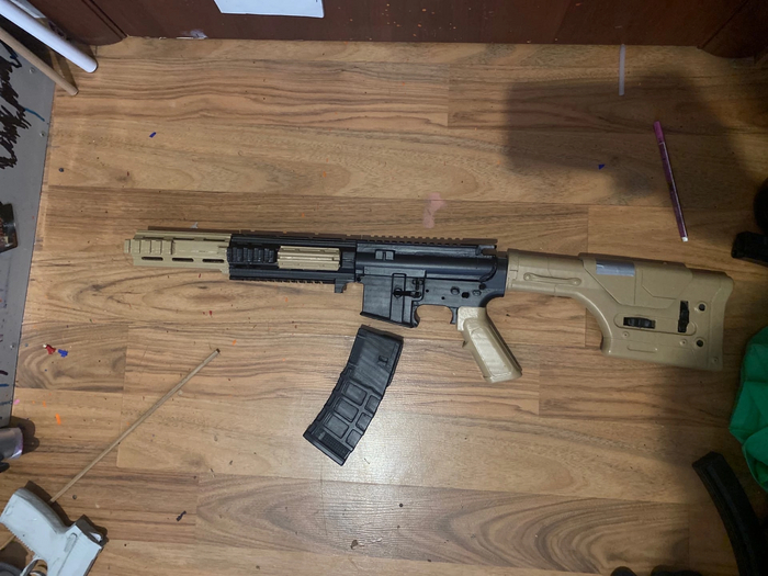 Модель оружия и несколько иных деталей костюма были заказаны у опытных моделистов, т.к. сами мы в 3д моделинг ещё не можем :) так же в другой мастерской заказан был шлем (не бейте, мастерскую не можем вспомнить, если отзовутся, обязательно укажем!)