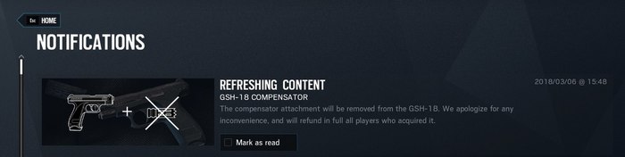 ● Элитная форма "Sidewinder" для Ash была временно удалена из магазина, из за того, что разработчики решают проблему с бесплатной выдачей этого комплекта всем кто заходил в в игру до 6 марта.