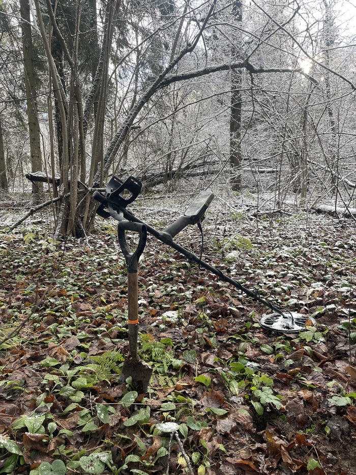 В этом году я смогла добраться до этого места только поздней осенью, когда все припорошило первым снежком. Интереса ради, я решила зайти к дому с другой стороны с существующей и поныне дороге, пройдя немного по лесу. И моя теория о том, что вокруг любого крупного хозяйства будут находки, быстро подтвердилась. Едва я зашла в лес, сразу же под катушкой металлоискателя заиграли сигналы, которые я сначала приняла за мусорные. Выкопав для интереса один из них увидела настрел, говорящий, что в этом месте 84 года назад шли нешуточные бои.