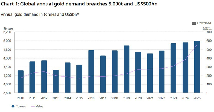 Перейдем ко второй версии: скупка мировыми ЦБ запасов металлов (золота) в преддверье слома мировой финансовой архитектуры. В 2025 году центральные банки сохранили высокий спрос на золото, несмотря на обновление ценовых рекордов. По данным World Gold Council, чистые покупки золота со стороны центробанков по итогам года составили 863 тонны, что ниже отметки в 1 000 тонн, достигнутой в каждом из трех предыдущих годов, но почти вдвое выше среднего уровня 2010–2021 годов, который составлял 473 тонны. При этом впервые в истории мировой спрос на золото превысил 5 тысяч тонн (т.е. всех, не только мировые ЦБ) — отчет Всемирного совета по золоту (WGC)
