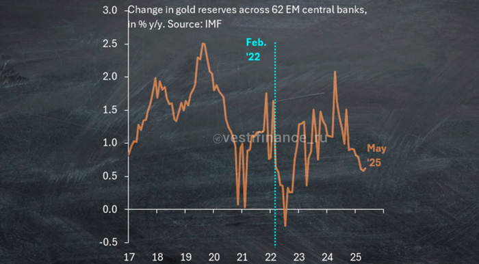 В среднем, похоже, центральные банки развивающихся рынков увеличивают свои золотые запасы примерно на один процент в год, с некоторыми колебаниями вокруг этой цифры, которые выглядят случайными. Это соответствует реальности управляющих резервами центральных банков, которые инвестируют консервативно и не тратят свои дни на спекуляции на росте цен на золото. Утверждение о том, что центральные банки являются движущей силой цен на золото, является ложным”.