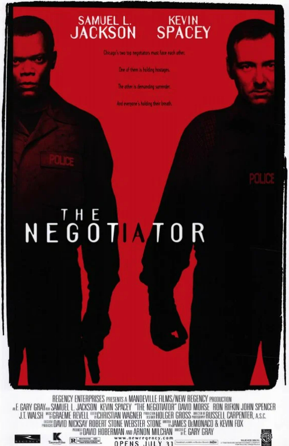 И вот наступает золотое время Сэмюэля Л.Джексона — середина девяностых. Главные роли, он на афишах, крупными буквами только его имя: «Большой белый обман», «Долгий поцелуй на ночь», «Время убивать», «187», «Пристанище Евы», «Красная скрипка», «Сфера» — и конечно, «Переговорщик».