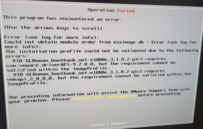 то не видит RAID контроллер, то все вместе, а то вдруг все видит, но на этапе установки ругается на мои вшитые в образ VIB с драйверами ссылаясь на какие-то зависимости:
