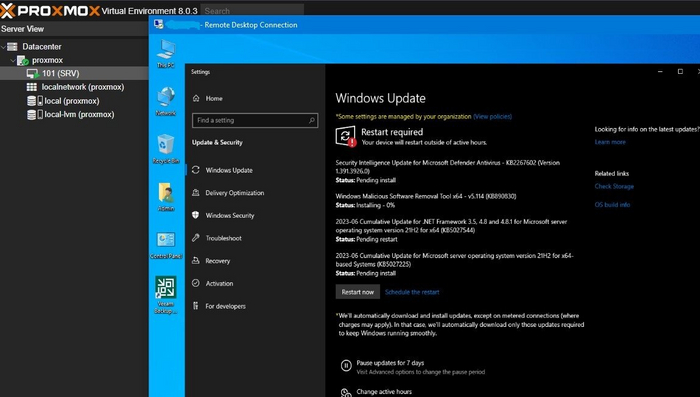 Этот момент мне несколько поднадоел и решил я в качестве эксперимента накатить последнюю версию Proxmox, вот как есть, без каких-либо изменений и она без проблем установилась на текущую конфигурацию, увидела и RAID контроллер и сетевую карту, да всё настолько легко прошло, что я решил перенести на неё все мои виртуалки. Собственно сам перенос из файла .ovf выполняется одной единственной командой qm importovf 103 /home/Win11/Win11.ovf local-lvm: