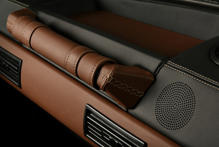 Интересно, что подвеска остается в штатном исполнении — неразрезные мосты спереди и сзади. А вот дифференциалы и полуоси пришлось допилить — они просто не вывозят мощи нового двигла. Сия стильная машина покоится на 18-дюймовых колесах с олдскульными дисками Weller.Такие тапки нужны не только ради шарма: под ними скромничают усиленные тормозные механизмы на шесть поршней спереди и четыре — сзади, ёба🫢