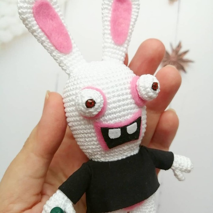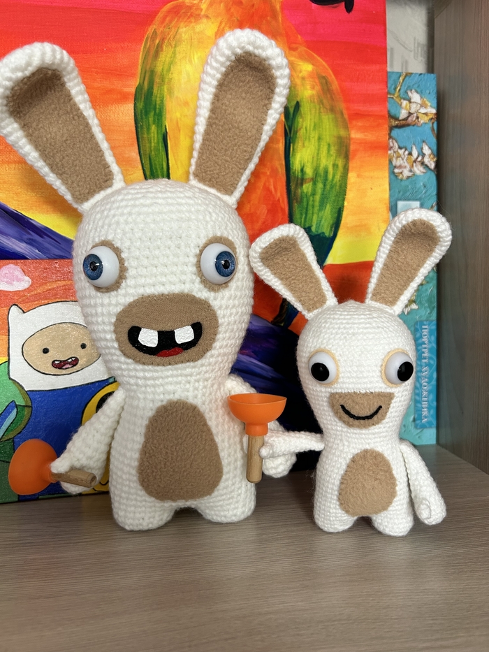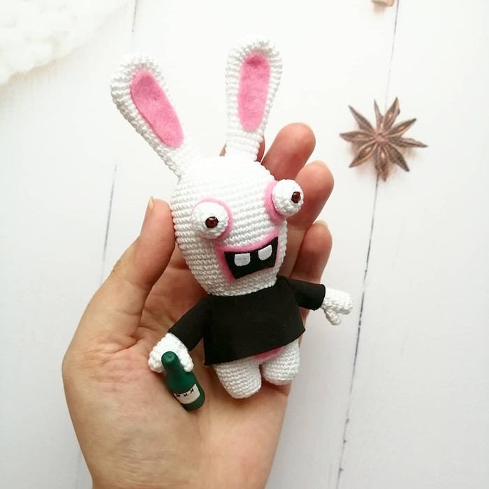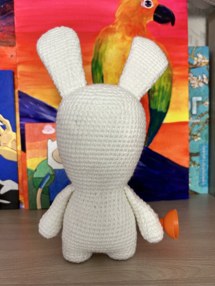 Долго вынашивала эту идею и вот наконец исполнила! Кролик стоит сам, в этом ему помогают турецкие лиры в ногах) Связан крючком 2.0, пряжа Пехорка детская новинка. Глаза и вантуз приклеены, остальное пришито. Животик, ушки изнутри и мордочка из флиса. Мордочку пришлось побрить обыкновенным станком чтобы нарисовать рот акриловыми красками для ткани.