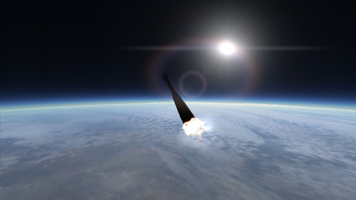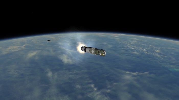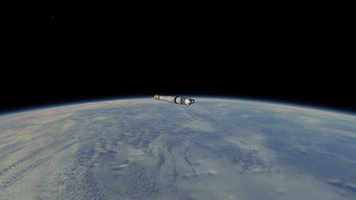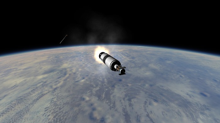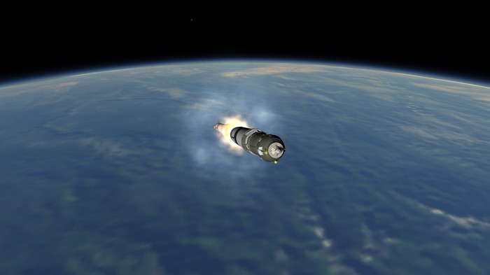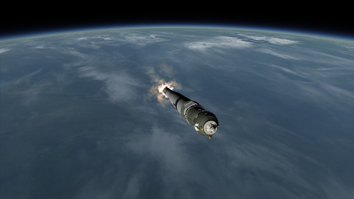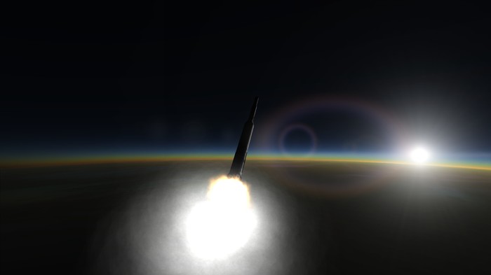 Утро. Ракета на старте. Раздаются подготовительные команды. Мы, стоя на улице, наблюдаем за ракетой. Звучит "зажигание", и под ракетой появляется огромное пламя жидкостного двигателя. "Подъем" - Р-4 резко отрывается от земли. Масса в 20.5 тонн уносит я в небо с невероятной скоростью.