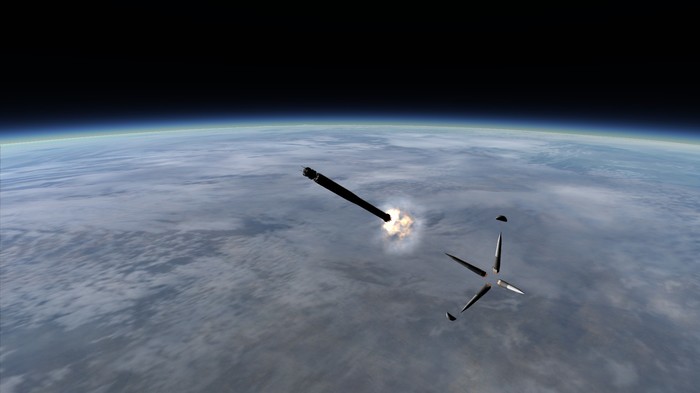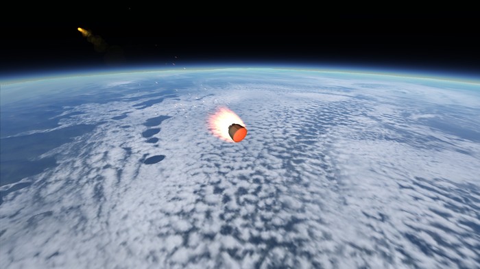 Через несколько минут появились очень длинные ярко-жёлтые полосы: сгорал бак ракеты и обтекатель, возвращался главный элемент ракеты - командно-научный модуль. Раскрылись 2 парашюта и этот модуль благополучно вернулся. "Высота была более 100 км!" - довольным голосом сказал один из конструкторов.
