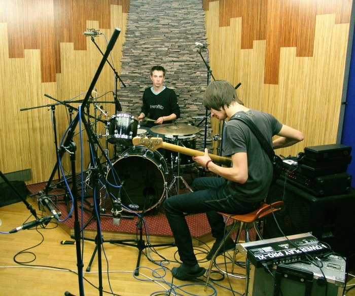 Текст был написан, инструментал доведен до ума, настало время для «десерта» - записи. Нам нужно было приступать к мозговому штурму где именно ее сделать. К нашей радости долго ломать голову не пришлось: в 2010 или 2011 году нам представилась возможность сыграть с очень крутыми ребятами - группой "Adaen". Когда мы послушали их записи, то поняли, что нам надо по тому же адресу. Участник “Adaen” в ходе переписки направил нас к Саше, с которым мы быстро договорились по поводу времени и цены. Моментально схватив вещи, мы отправились в новый мир. Кстати, события развивались так стремительно, что мне пришлось одолжить более серьезный музыкальный инструмент у знакомых.