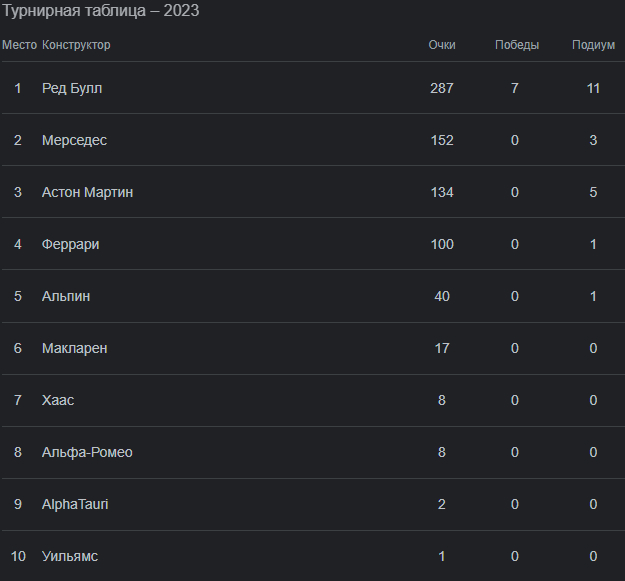 4-е место после перестановок досталось Норрису, а пятое – Алонсо, который если сам не может, то команда всегда поможет. Сайнс опустился на шестое место, а Хэмилтон – на 8-е, уступив еще и партнеру по команде. Стролл, увидивший клетчатый флаг 10-м, получил два очка за 9-е место, замкнул очковую зону Гасли.